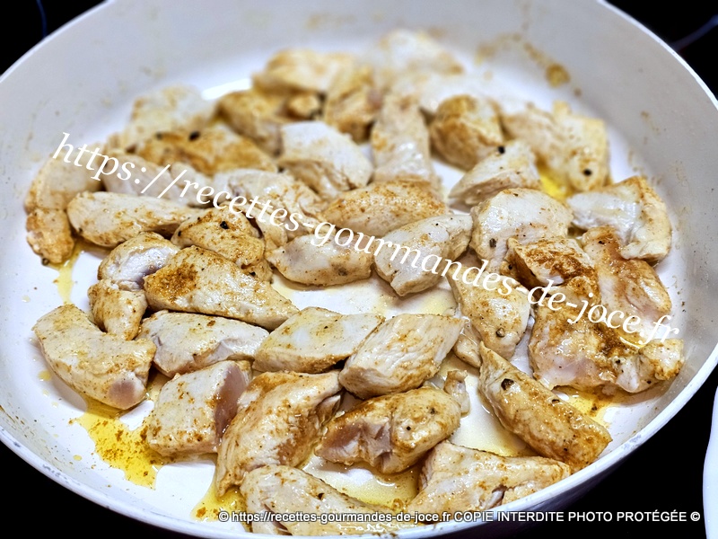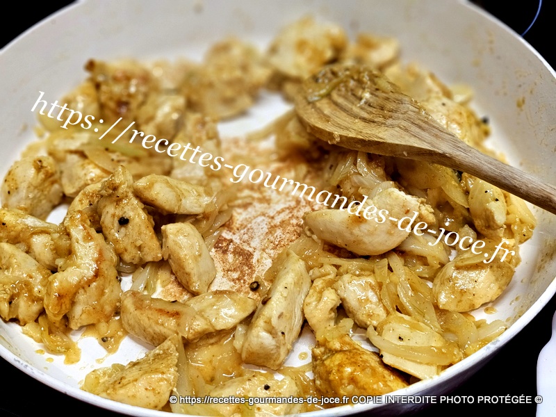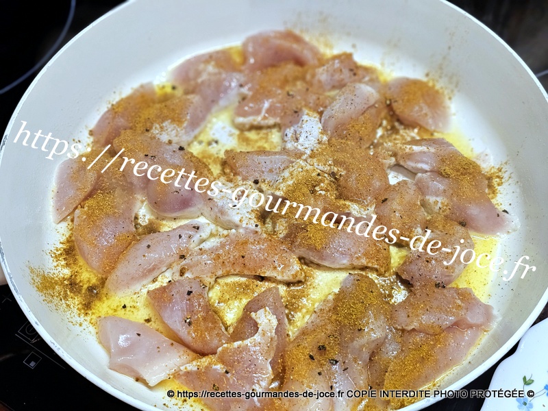 Saler et poivrer, ajouter le curry. Bien mélanger et laisser cuire en remuant.