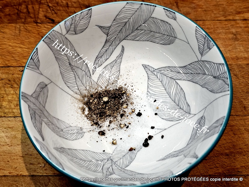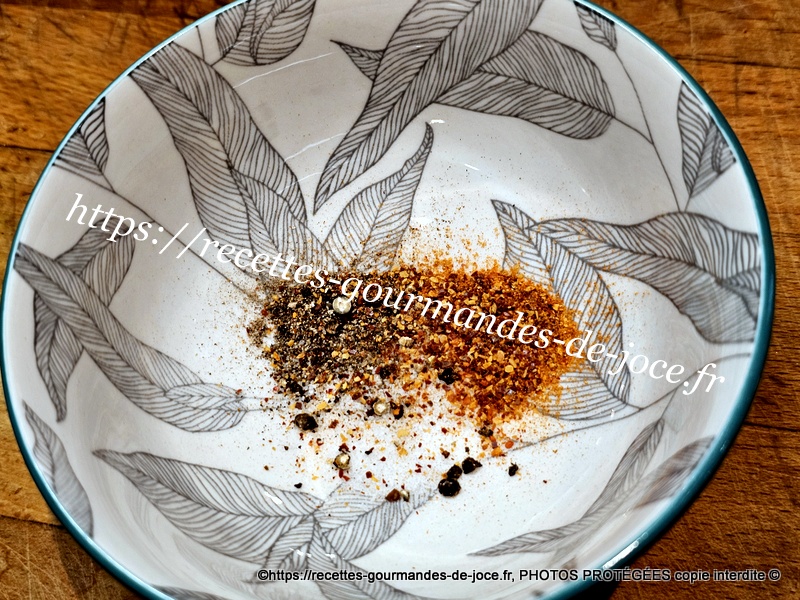 Dans un bol, mettre le sel et le poivre, ajouter le piment d’Espelette et le paprika fumé.