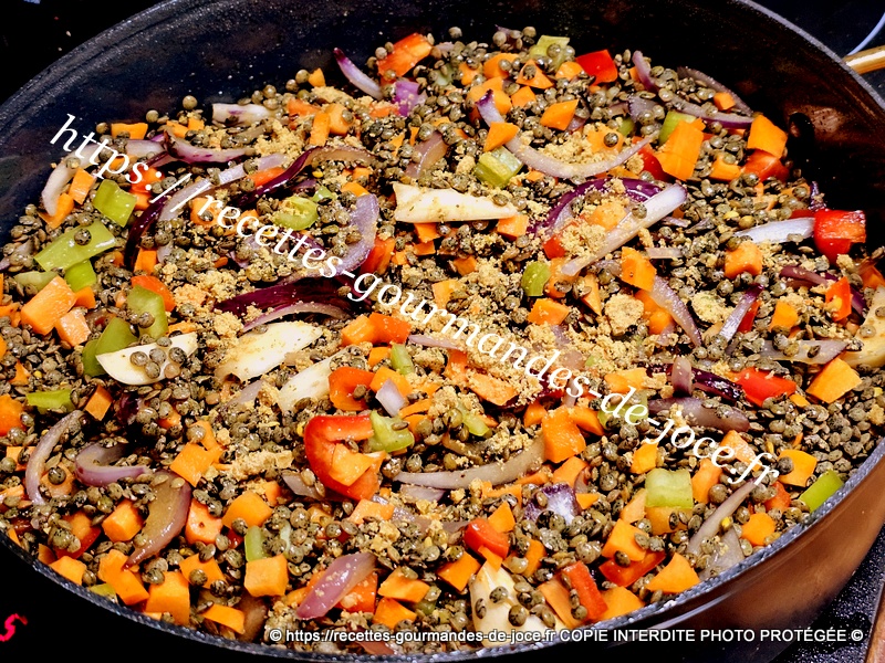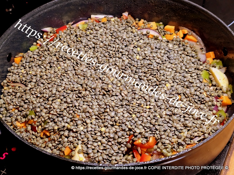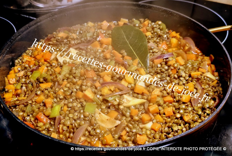 En fin de cuisson les lentilles auront absorbé la totalité du bouillon.