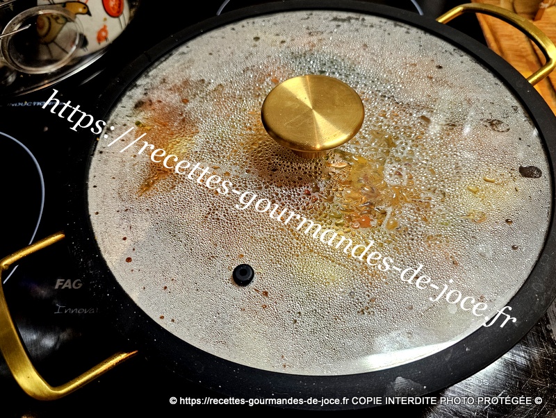 Verser de l’eau à la hauteur des ingrédients et mélanger, couvrir et laisser cuire environ 20 minutes à couvert, remuer de temps en temps. Au bout de 20 minutes de cuisson ôter le couvercle.